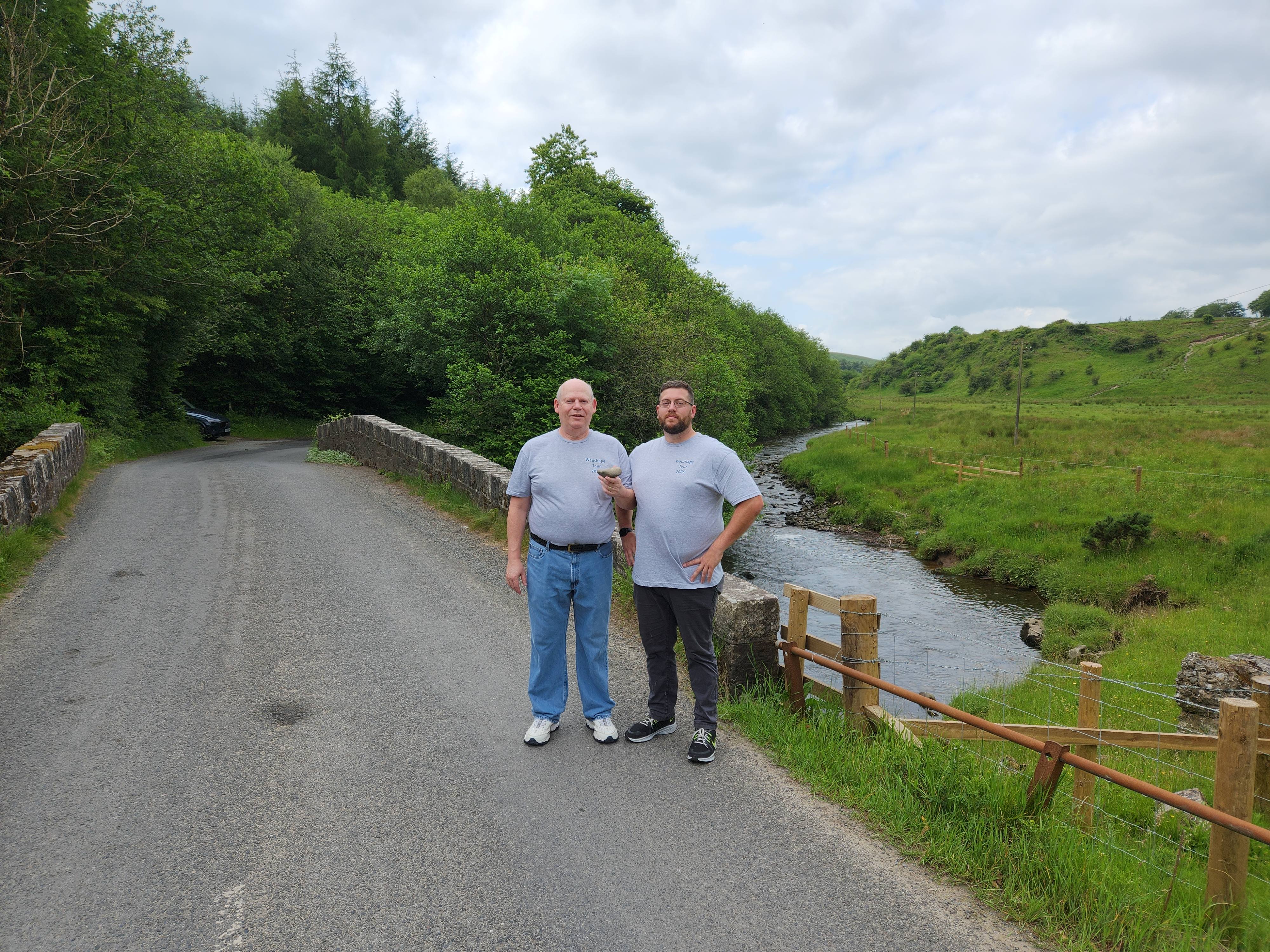 Bruce standing on the Auld Stane Brig over the Wauchope Water of