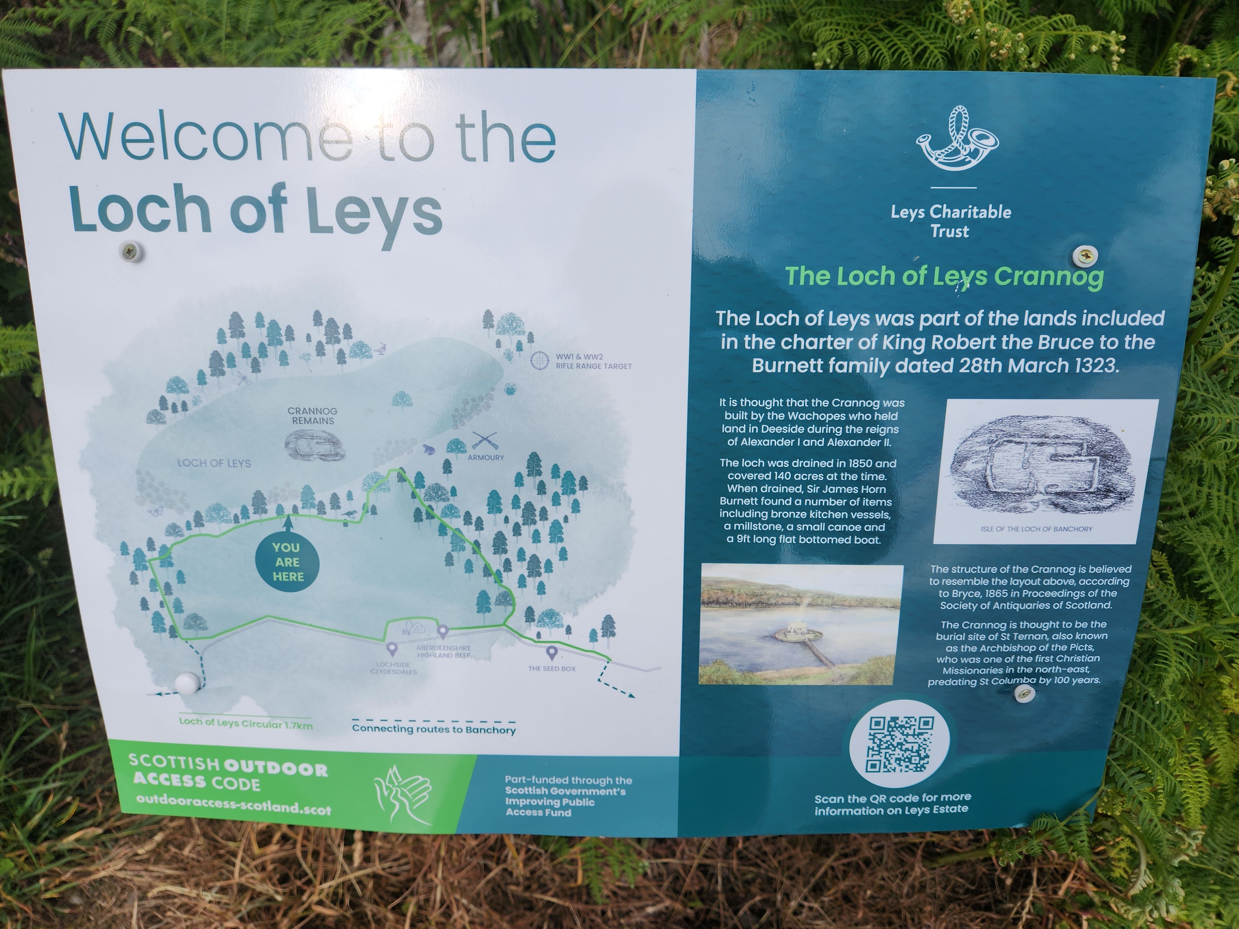 ancient fortalice at the Loch of Leys as a trail was built around the south